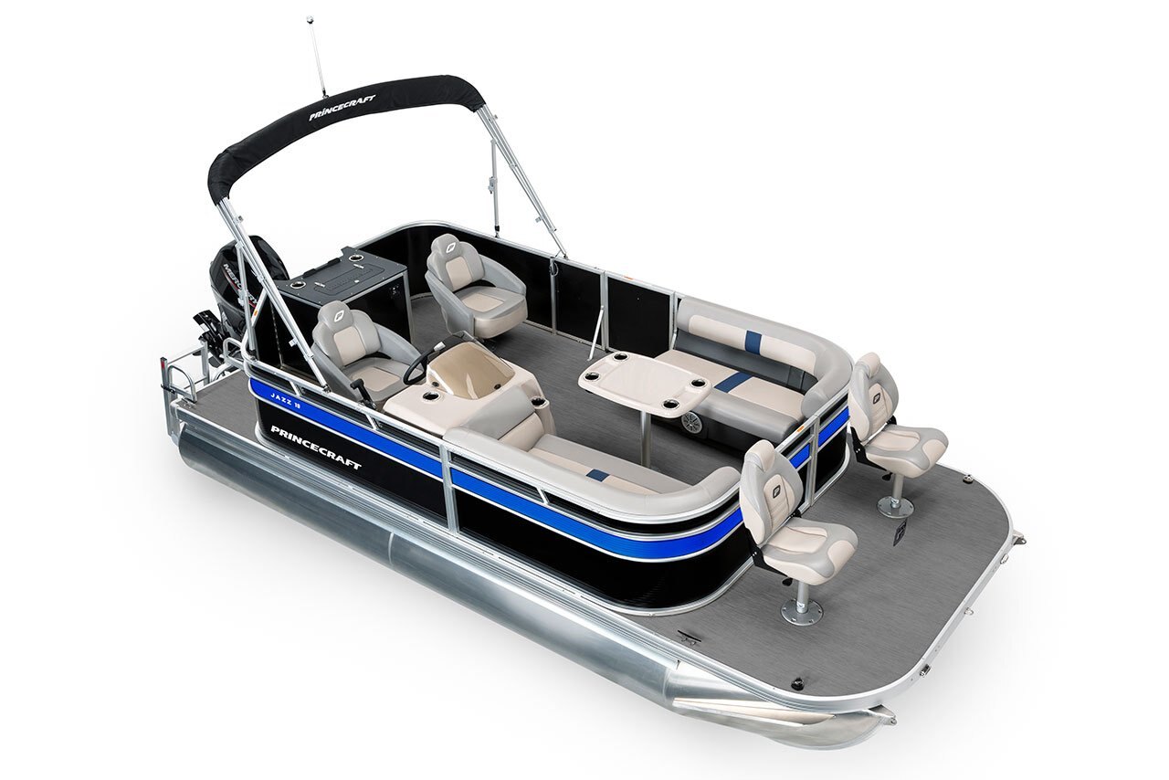 2026 Princecraft Jazz 19 4S Grey metallic graphic package BlackOptional Bow beige pedestal mount removable table